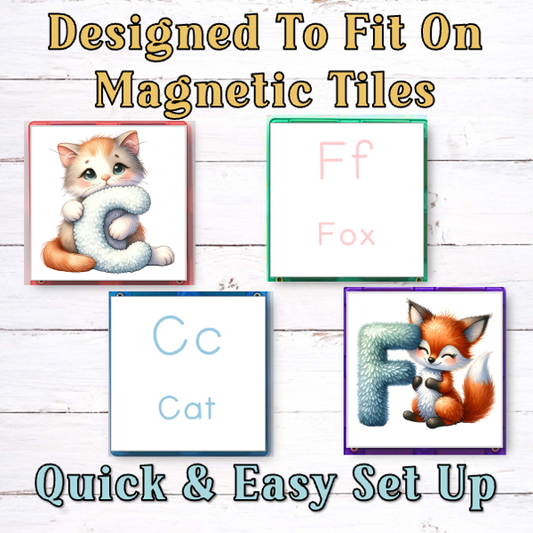 Animal Alphabet Letter Match Activity - Magnetic Tile Toppers
